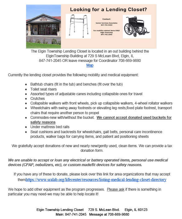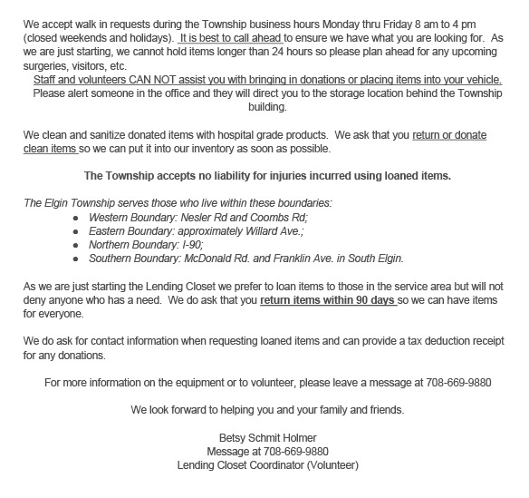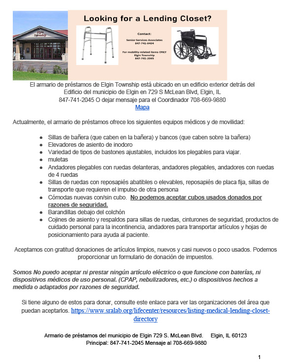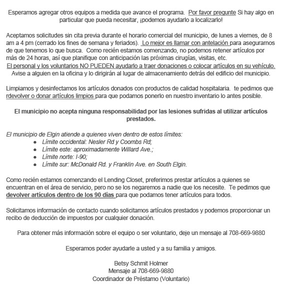 For a e-readable or accessibly version of Lending Closet Information in English or Spanish, click here to send us a request.